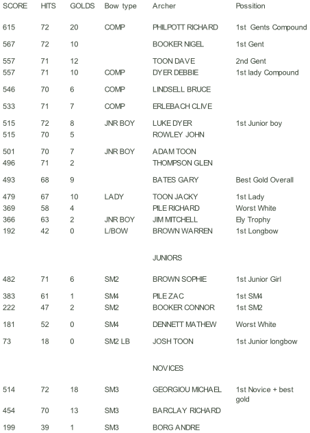 Full results can be found on the county web site http://hertsarchery.org.uk/betasite/2015/02/12/4253/